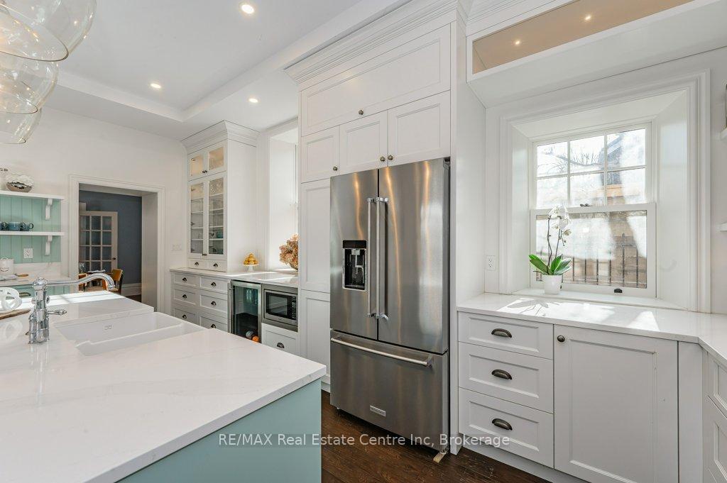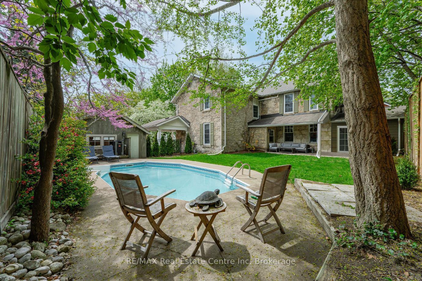 15 Liverpool is a timeless 3226sqft home that blends rich history W/thoughtful renovations nestled on one of Guelph's most beloved streets just steps from vibrant downtown! Beyond its striking curb appeal & original limestone exterior this property offers a backyard oasis W/heated inground pool, perfect place to unwind & entertain! Built in 1850 & expanded over the decades, this 5-bdrm home retains key elements of its historic charm. 2 original Italian marble fireplaces imported in 1850s remain beautifully preserved-testament to the homes craftsmanship & legacy. Yet at every turn its clear this home has been updated for modern living. Custom kitchen is designed W/entertaining & everyday life in mind W/quartz counters, Paragon cabinetry, high-end appliances & radiant in-floor heating. Off the kitchen is bright mudroom, 2pc bath & laundry also W/heated floors. Formal living & dining rooms are elegant & inviting W/hardwood, soaring ceilings, high baseboards & oversized windows. Upstairs, 5 spacious bdrms provide room to grow, host or work from home. Large windows brighten every room while thoughtfully added closets offer rare storage for a home of this era. One bdrm has custom B/I shelving perfect for book lovers or collectors. 2 full baths offer timeless design W/beautifully tiled main bath W/glass shower & soaker tub. Fenced backyard oasis W/heated in-ground pool recently upgraded W/new pump, sand filter, heater & custom safety cover, turn-key for summer enjoyment! Detached 2-car garage at end of long driveway includes storage& EV-ready. Major updates have been completed: new hydro line, updated insulation, full drainage system, multi-zone heating/cooling & high efficiency boiler. 2-min walk from downtown Guelph W/restaurants, shops, entertainment & GO Station. This home has been deeply cared for, one that honours its roots while embracing rhythm of modern family life. You're not just buying a house you're joining a story that's been unfolding for more than 170yrs